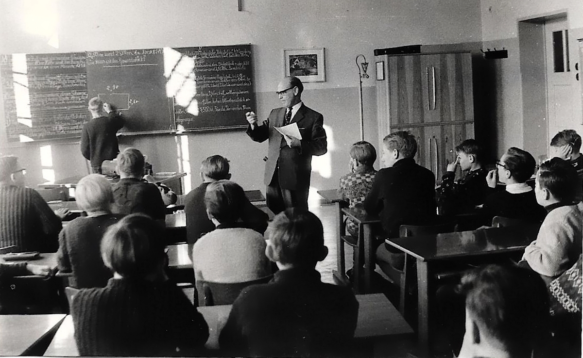 Den Unterricht ab der ersten Klasse 1957 bis zur vierten Klasse 1960 bei Lehrer Lummer, hier mit dem Abschluss-Klassenfoto 1959/60 beim Hermannsdenkmal. ( bei der Klasse 5/6 ist der Lehrer Herr Tölle und Herr Höischen)