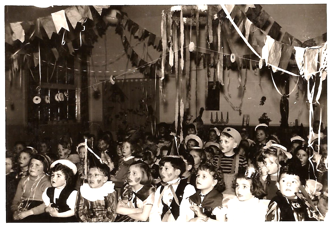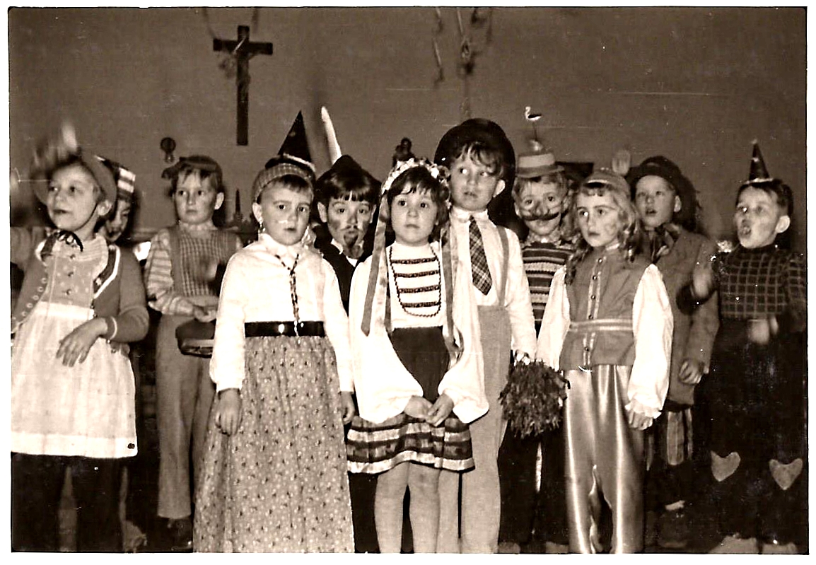 Wir sind schon etwas grösser Fastnacht 1957, alle sind wieder toll verkleidet, Ostern folgt die Einschulung