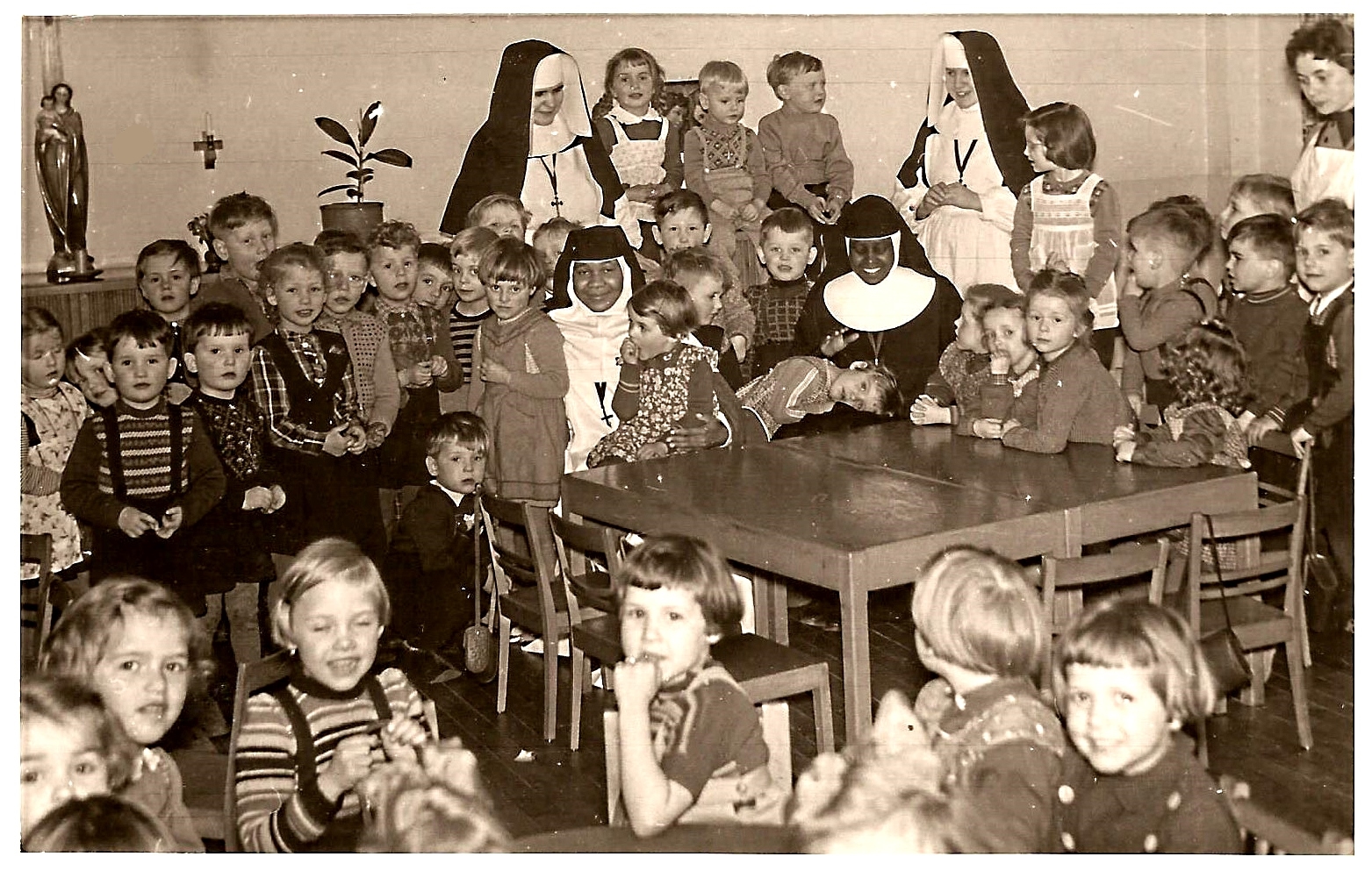 Vorne in der Mitte: Wilfried Hartleb, hinten auf der Bank Schwester Virginatis ....