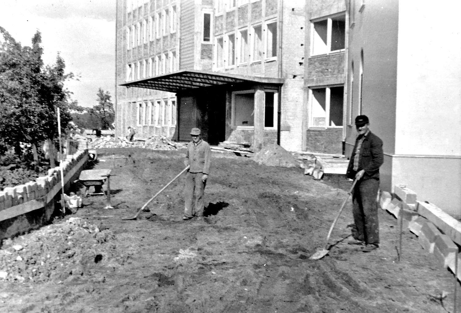 Die grosse Erweiterung, mein Vater bei den den Bauarbeiten an der neuen Zufahrt zum Herz Jesu Krankenhaus (Erweiterung ) in den Fünfzigern.
