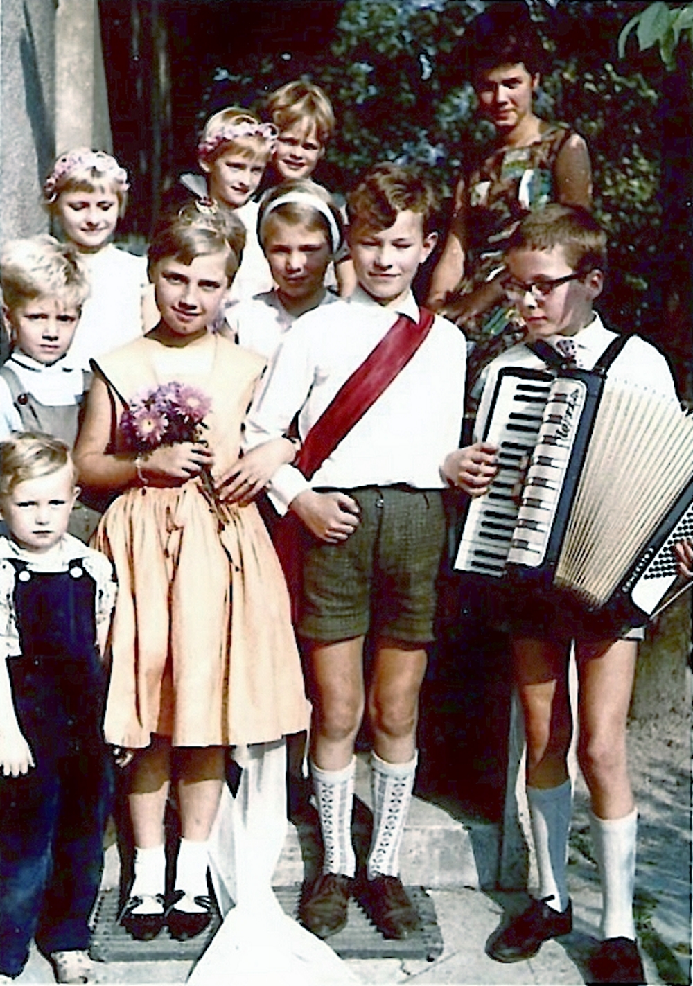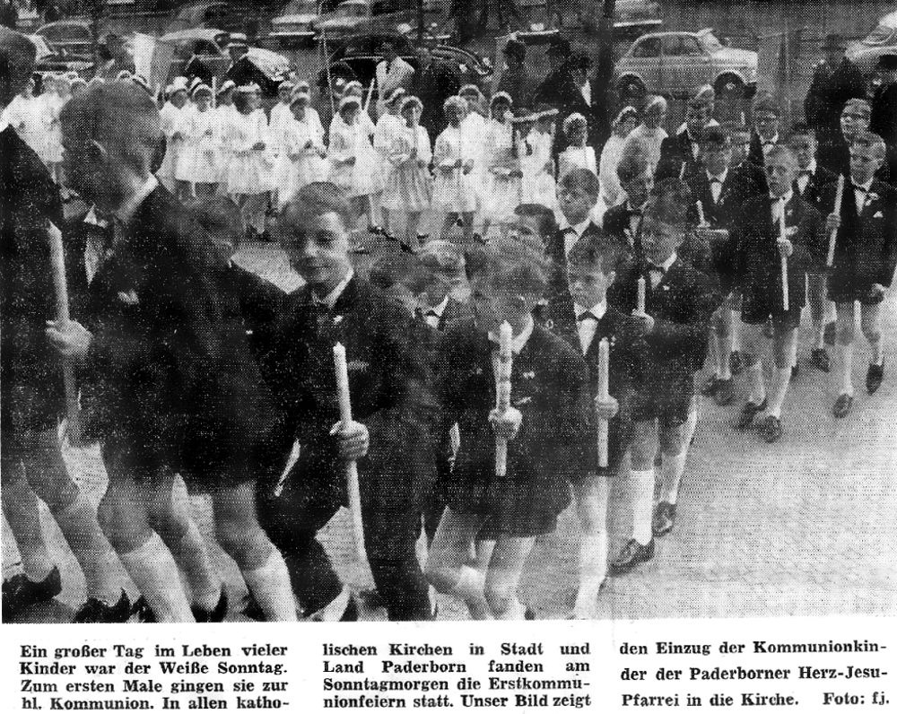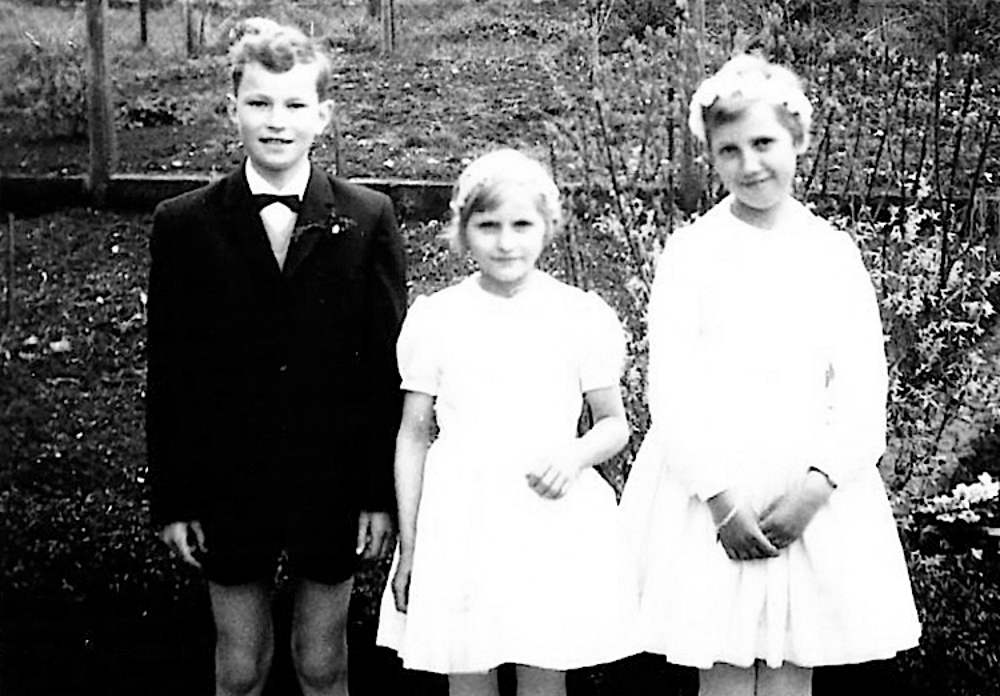 Kommunion 1963, Hans Günther mit seiner Schwester Gisela als Engelchen, und Ingrid Leutnant.