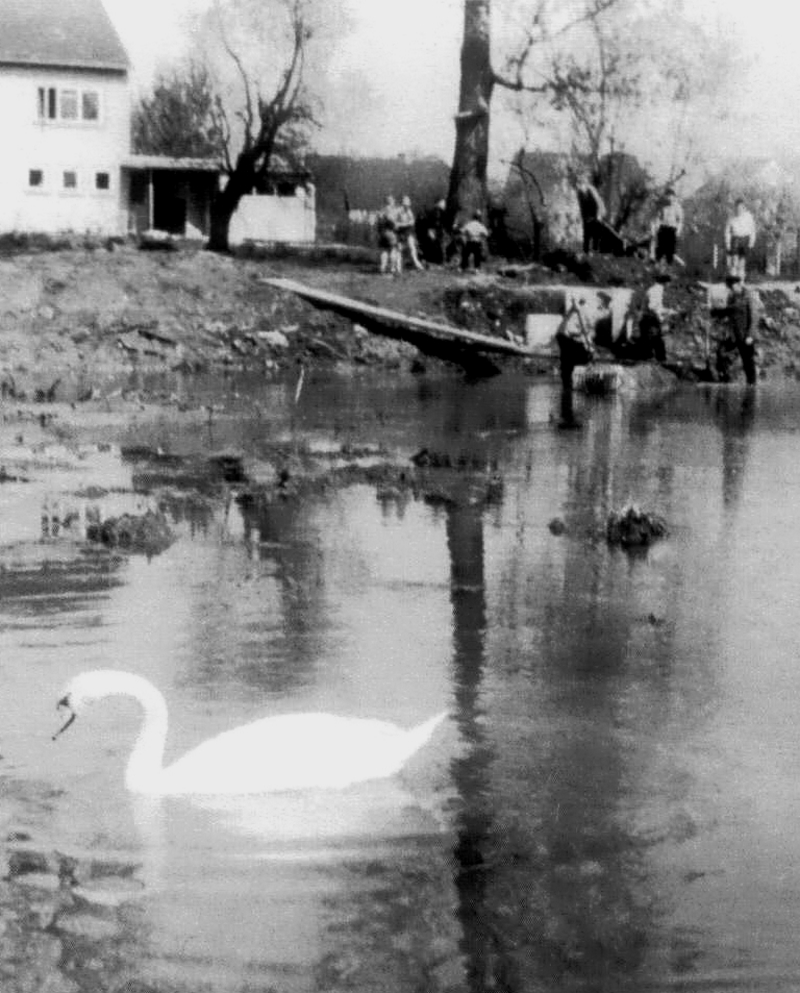 Es kommt Leben in den Kolk, im April 1961 werden die Schwäne eingesetzt