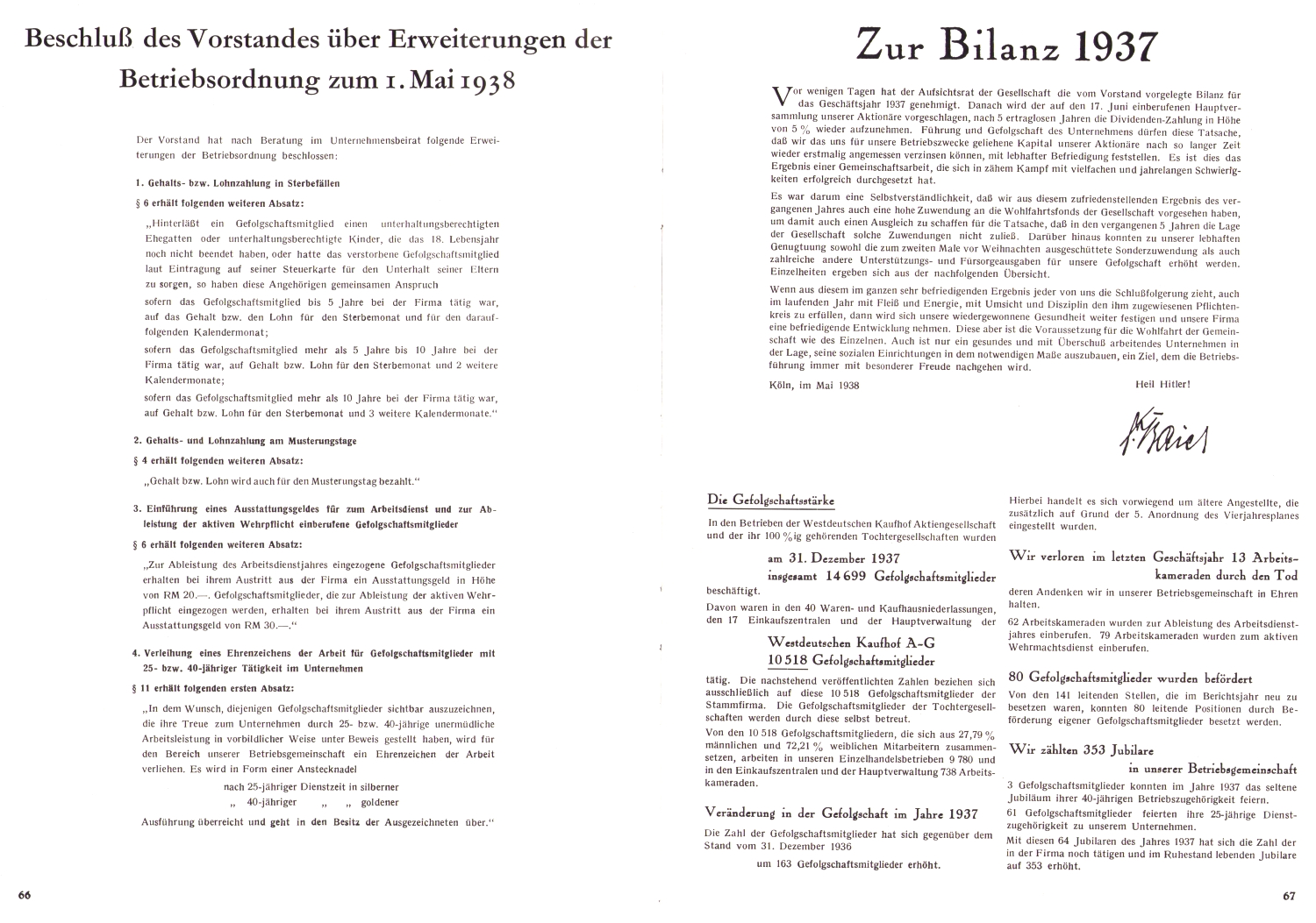 Betriebsverordnung zum 1.Mai 1938 - Bilanz 1937