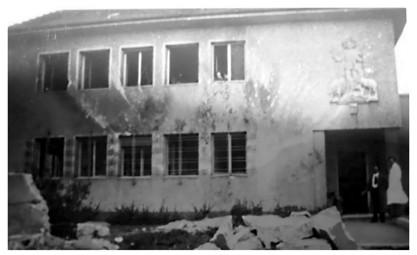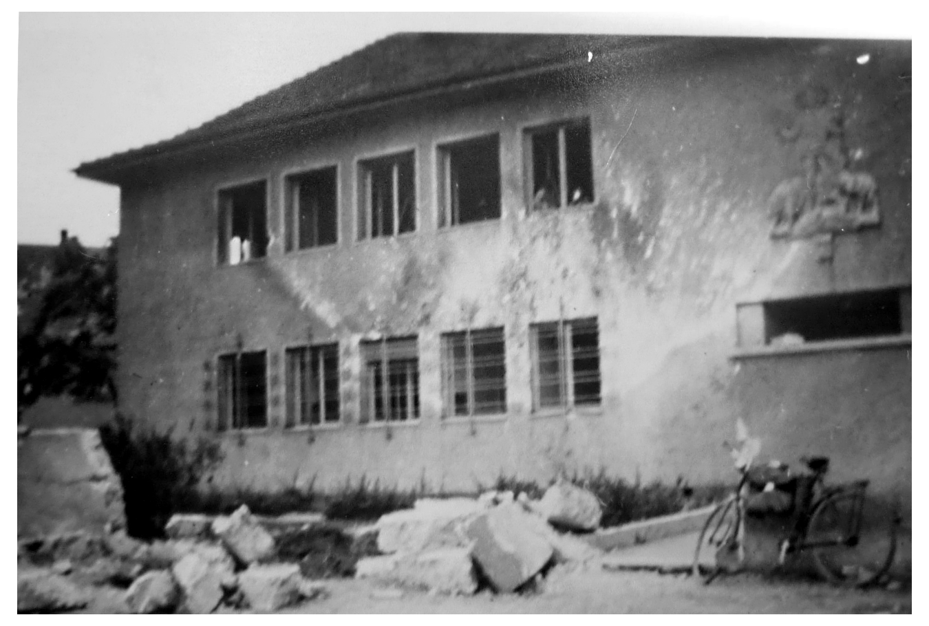 Hier zwei Abbildungen vom ausgebrannten Verwaltungsgebäude .